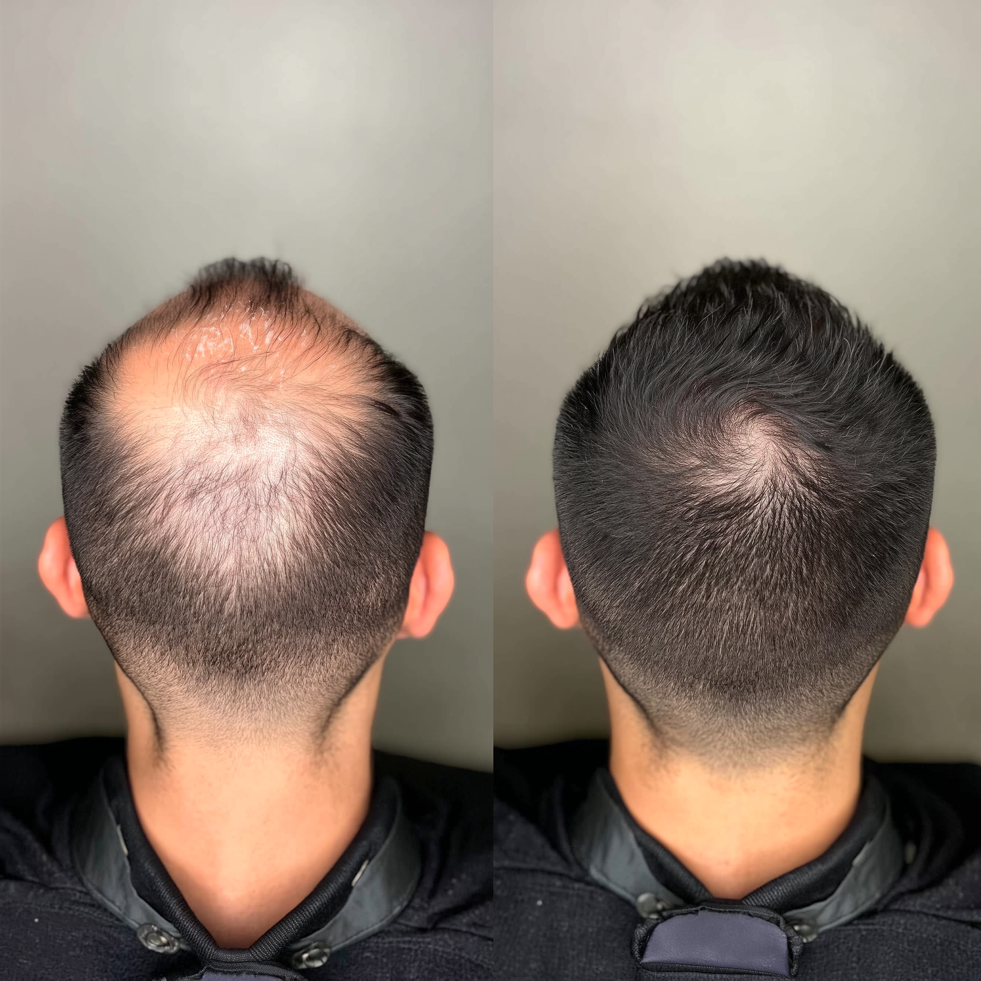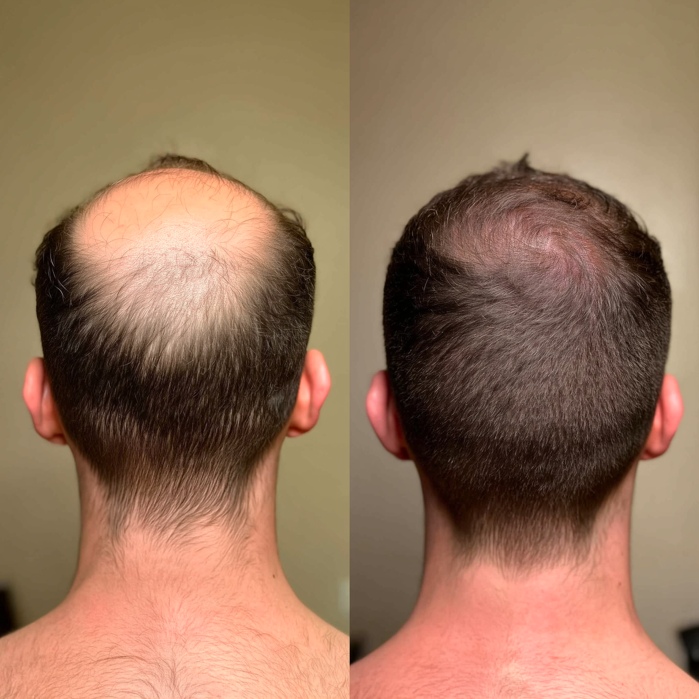 Es más efectivo para la calvicie masculina de patrón temprano a moderado, particularmente en la pérdida de densidad en la coronilla y la recesión en las sienes donde los folículos están dormidos pero no completamente perdidos.