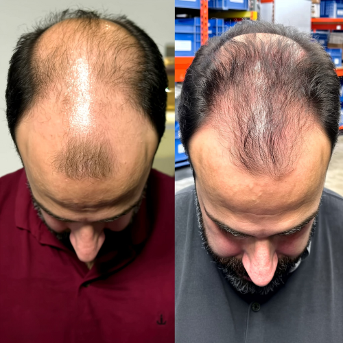 La mayoría de los hombres notan una reducción de la caída del cabello en 2-3 semanas. El crecimiento visible de cabello nuevo generalmente comienza alrededor de la semana 8, con una mejora significativa hacia las semanas 10-12. Para obtener resultados óptimos, se recomienda un uso constante durante varios frascos, ya que el crecimiento del cabello ocurre en ciclos.